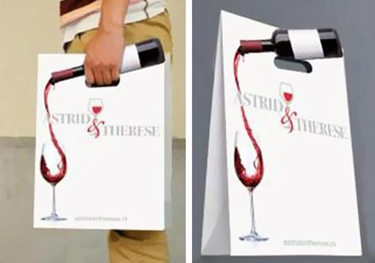 • Sacolas de vinho: o rótulo da garrafa se transforma visualmente em um copo.