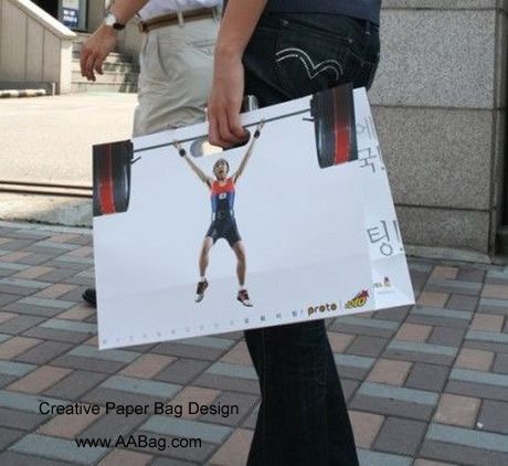 • Sacolas de lojas de fitness: alças que simulam halteres ou equipamentos.